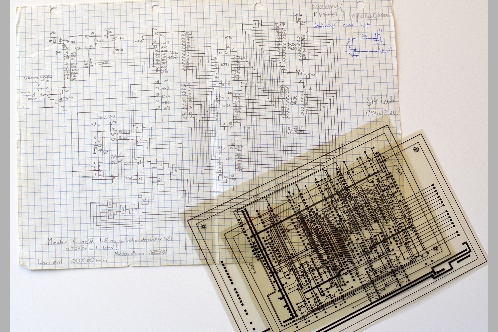 A központi vezérlő C167 1MFlash, 1MRAM, CAN, Serial, hang felvevő/lejátszó, rádiós kapcsolat, I/O.